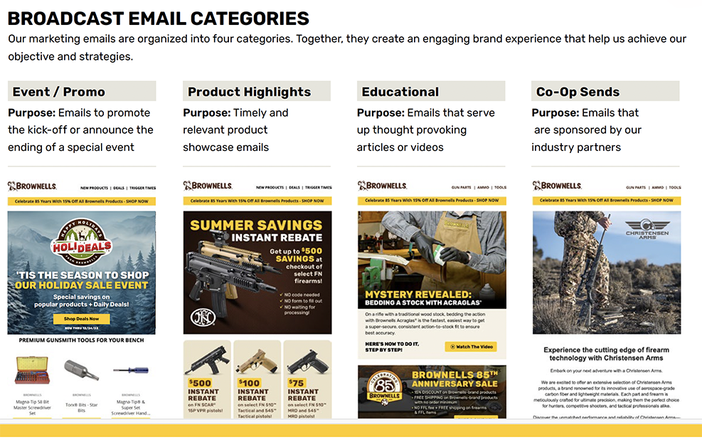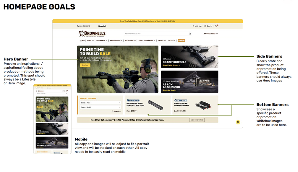 Redesign of Brownells Homepage to allow more banners along with setting clear objectives for each banner
